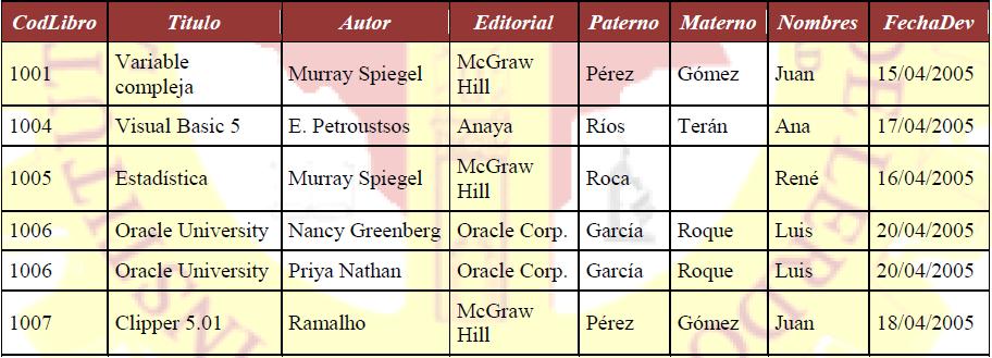 A fines de 2005, fonelcorp se vio obligada a reexaminar las condiciones de trabajo de la infraestructura. Se define como discriminador al conjunto de atributos de una entidad débil que permite distinguir a las entidades dentro del conjunto. La primera de las formas normales que se van a estudiar, la primera forma normal, impone un requisito muy elemental a las relaciones; A diferencia de las demás formas normales, no exige información adicional como las dependencias funcionales. Los atributos se describen en la estructura de la base de datos empleando un modelo de datos. 1.5 proceso de desarrollo de la base de datos; Tipo de atributo cujos valores são distintos para... La primera de las formas normales que se van a estudiar, la primera forma normal, impone un requisito muy elemental a las relaciones;