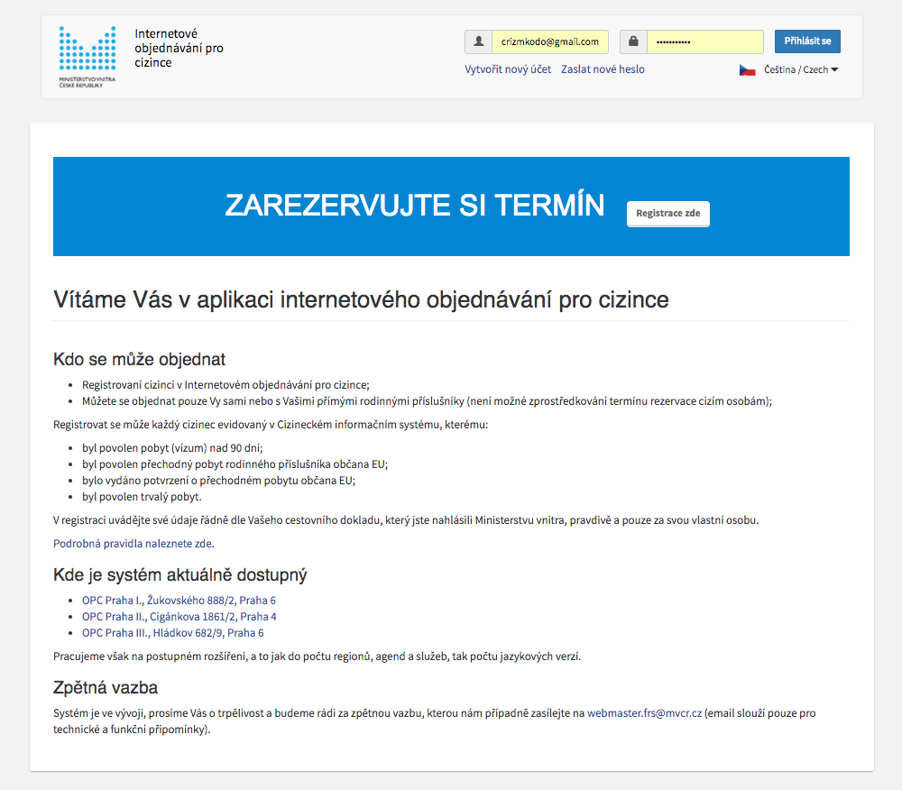 Můžete se objednat pouze vy sami nebo s vašimi přímými rodinnými příslušníky (není možné zprostředkování termínu rezervace cizím osobám); Ministerstvo vnitra bylo zřízeno na základě zákona č. Přehled změn v zákoně o pobytu cizinců s účinností od 2. Jste cizinec a potřebujete poradit? Registrovat se může každý cizinec evidovaný v cizineckém informačním systému, kterému: Ministerstvo vnitra je orgánem státní správy pro vnitřní věci, zejména pro veřejný pořádek a další věci vnitřního pořádku a bezpečnosti ve vymezeném rozsahu, včetně. V rámci této aplikace je možné ověřit stav řízení pouze u žádostí, o kterých bylo řízení zahájeno nejvýše před 2 lety!.. Registrovaní cizinci v internetovém objednávání pro cizince;