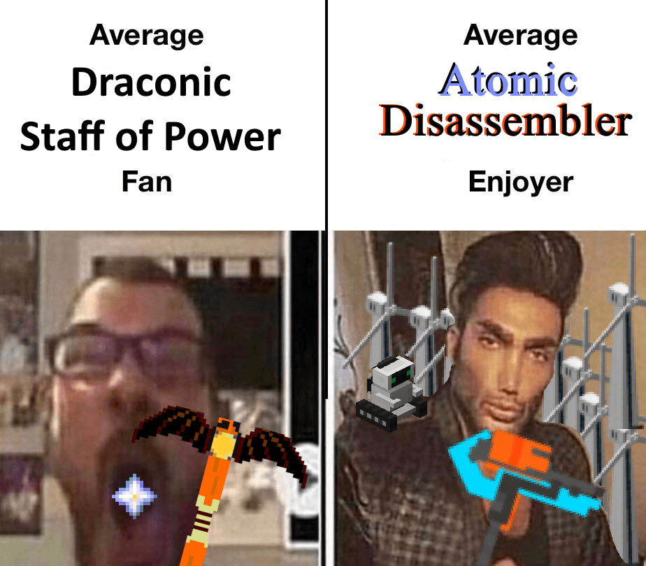The atomic disassembler is a tool added by mekanism. The atomic disassembler is a tool added by mekanism.